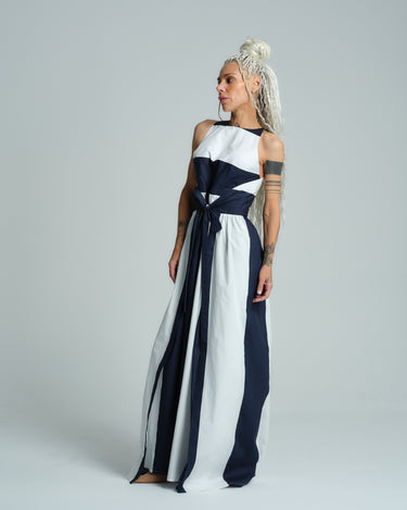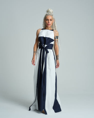Sleeveless White Printed Maxi Dress