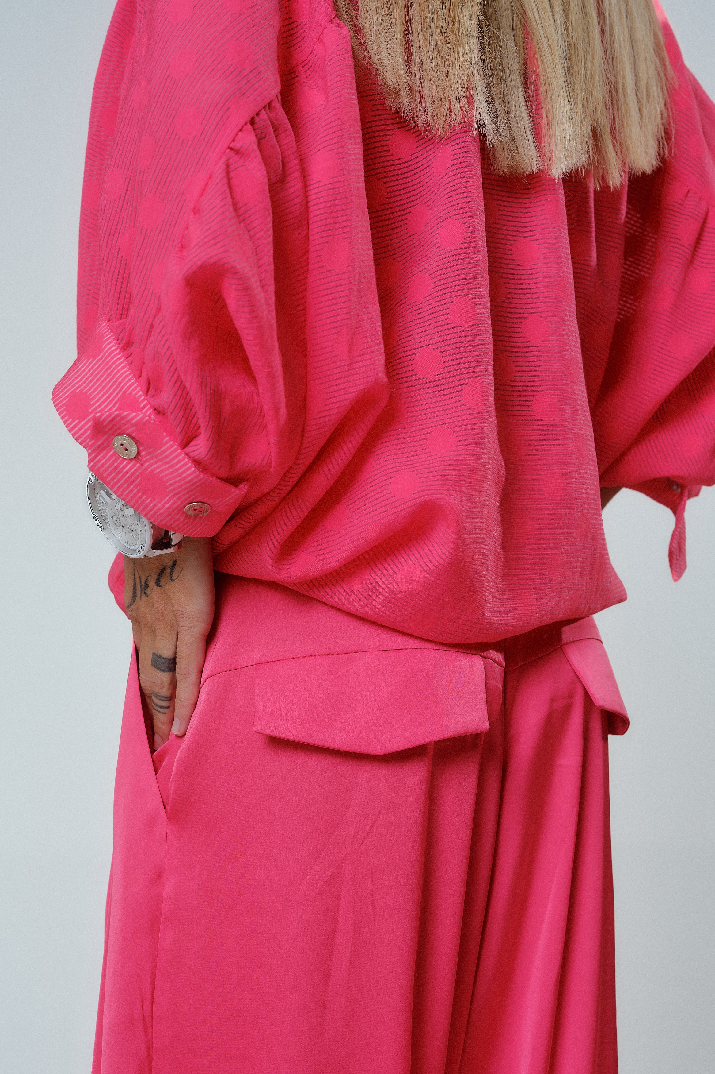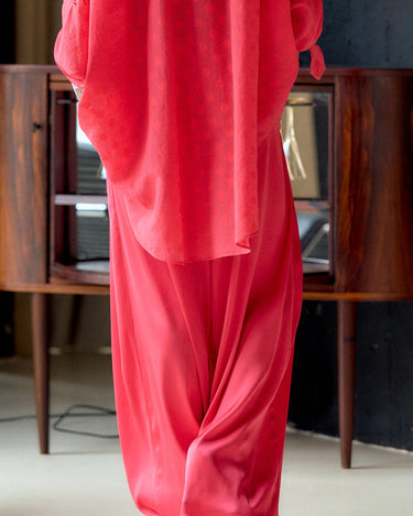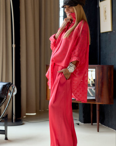 Vibrant and fluid, these coral wide-leg pants bring bold color and sophisticated movement to any look. Designed with a relaxed silhouette and a low-rise waist, they flow effortlessly with every step, combining comfort and contemporary style. The lightweight fabric drapes beautifully, while the side pockets add practicality without compromising elegance.