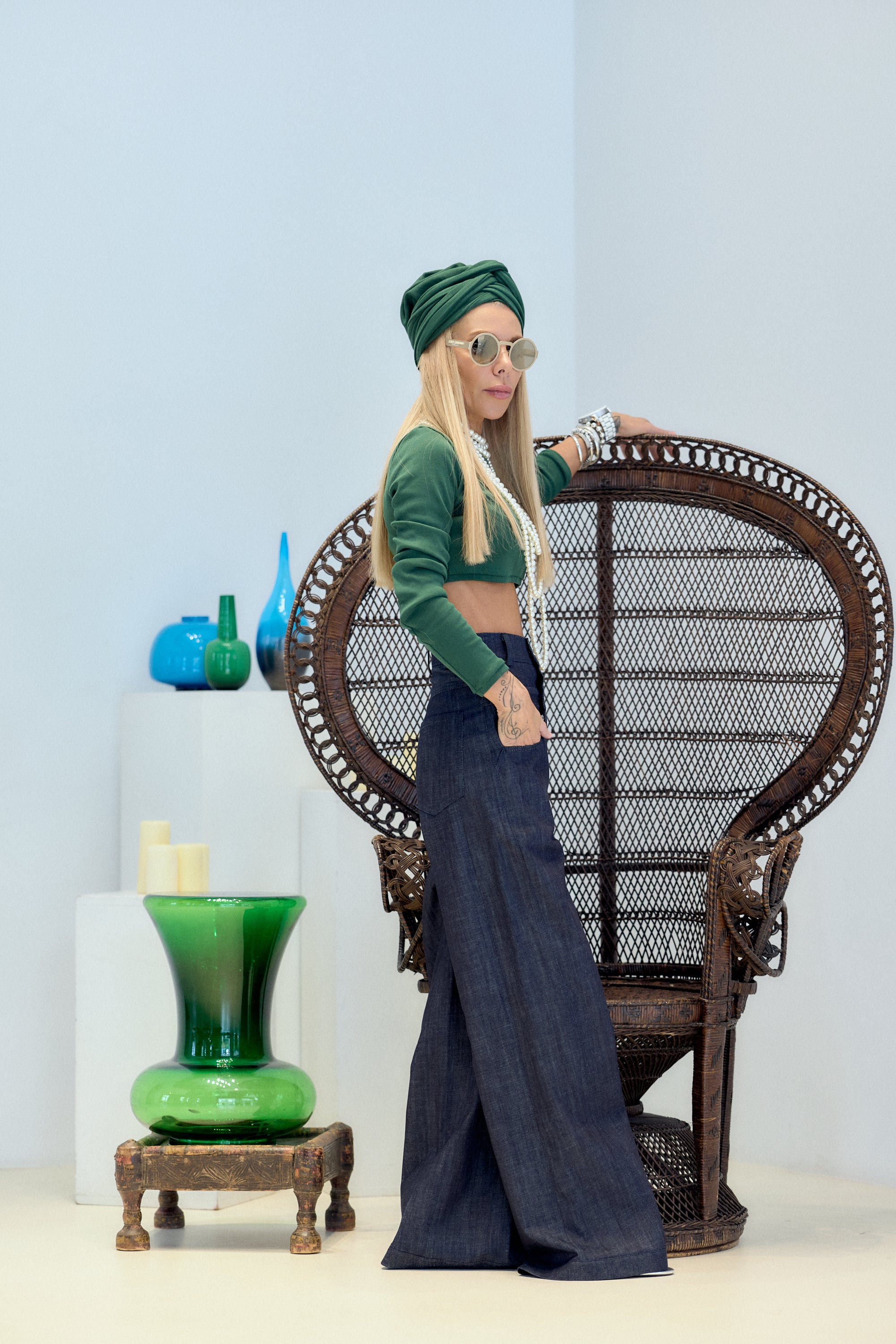 Pair it with high-rise jeans or tailored trousers for an effortlessly chic silhouette. Add statement pearls or metallic jewelry for contrast, or layer it with a long coat for a structured street-lux aesthetic.