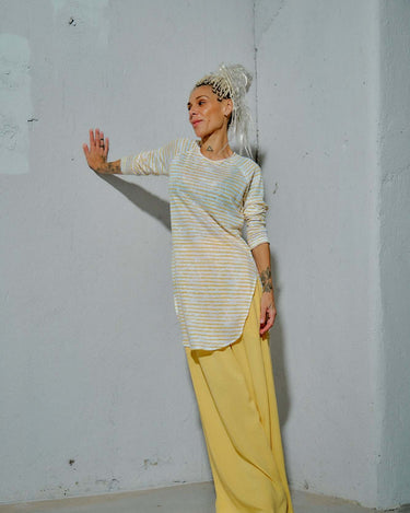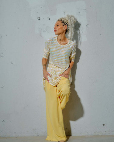 Designed to infuse your looks with vibrant energy, our pants have pleated details near the waist and a floor-grazing cut that enhances their relaxed silhouette. Style them tonally with our striped yellow top for a radiant look.