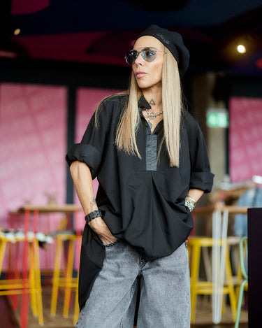 Black Oversized Shirt Dress