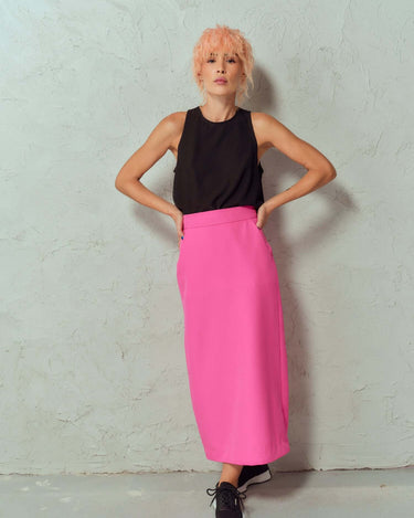 Add a burst of color to your life with our magenta skirt. Whether you're powering through the workday or transitioning into after-hours plans, this versatile piece seamlessly adapts, ensuring you look polished and chic from desk to dinner.
