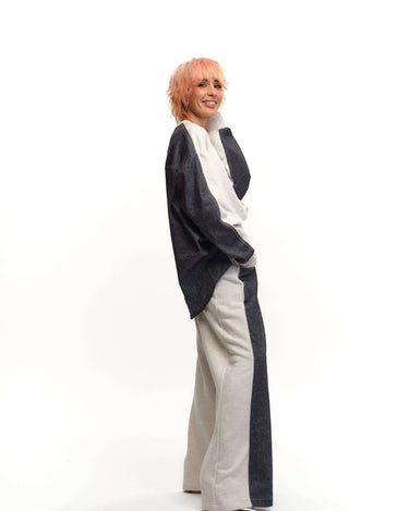 Unexpected and unique, this set reimagines activewear through a streetwear lens. Crafted from two fabrics, it creates a striking interplay of aesthetics and functionality. Designed to be worn as a statement ensemble or styled separately, it offers a modern, elevated take on athleisure.