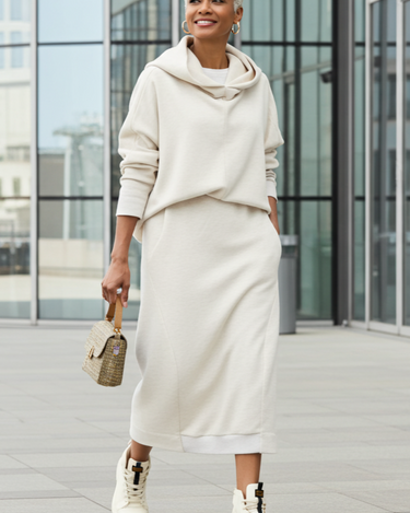 Refresh your athleisure looks. Our skirt and hoodie set is a soft and cozy ensemble that will keep you warm all year long.