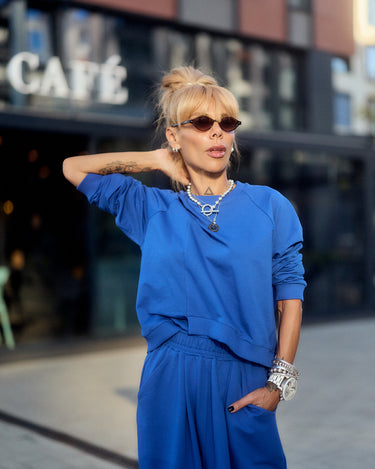 Royal Blue Two Piece Tracksuit Set For Women