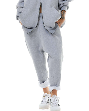Relaxed jogger pants with a dropped crotch and elastic waistband