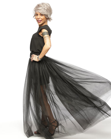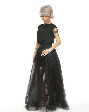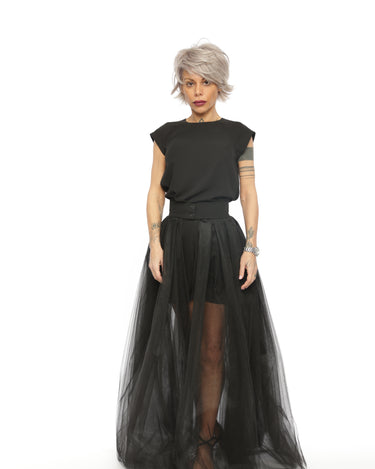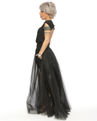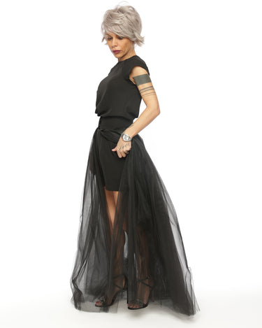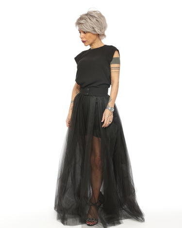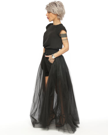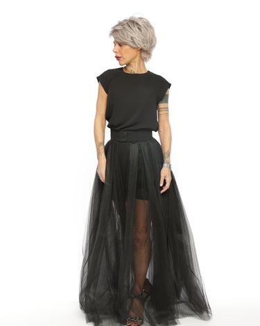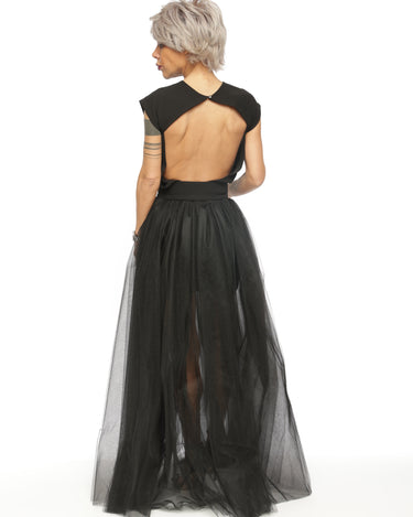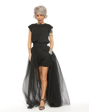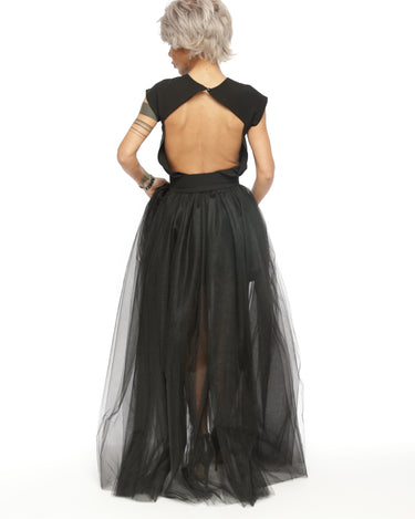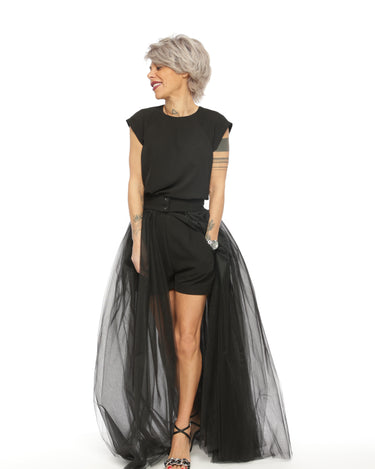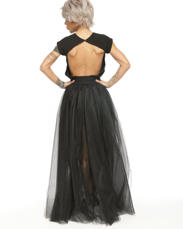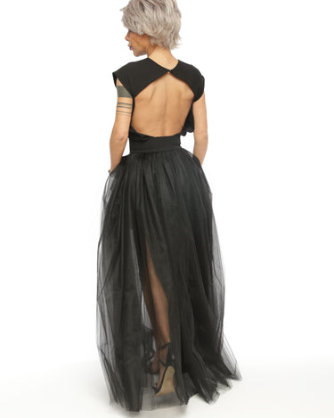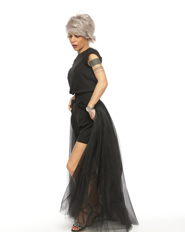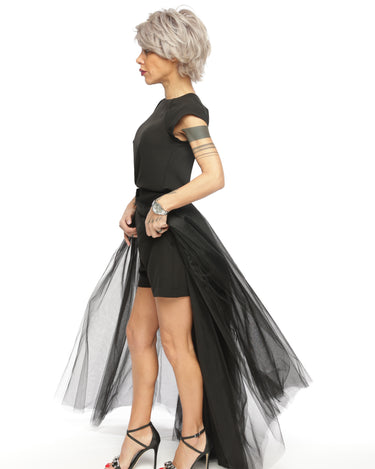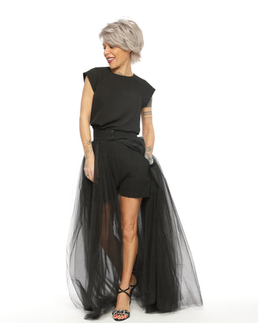 3-Piece Open-Back Top, High-Waisted Shorts and Tulle Skirt Co-Ord Set in Black