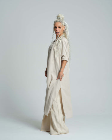 A maxi button-down shirt complete with side slits.
