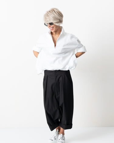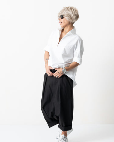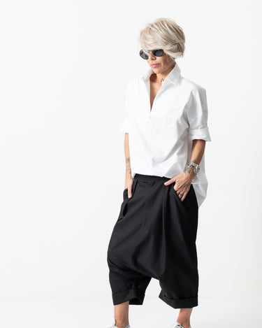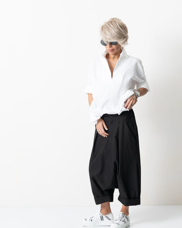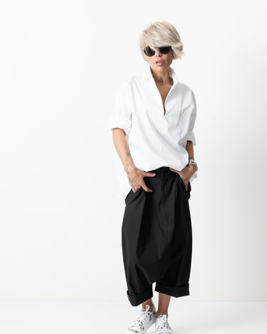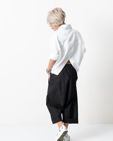 Black Drop Crotch Trousers with Pockets