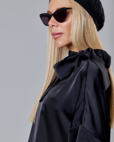 Black Satin Set with Shoulder Bow Detail