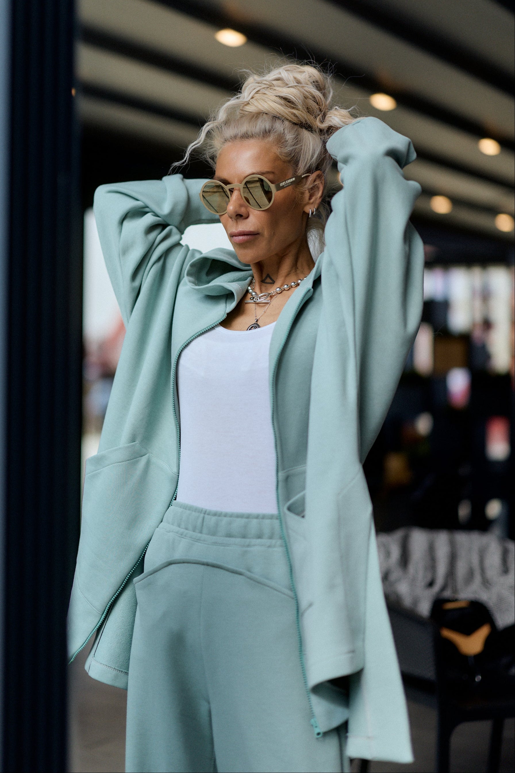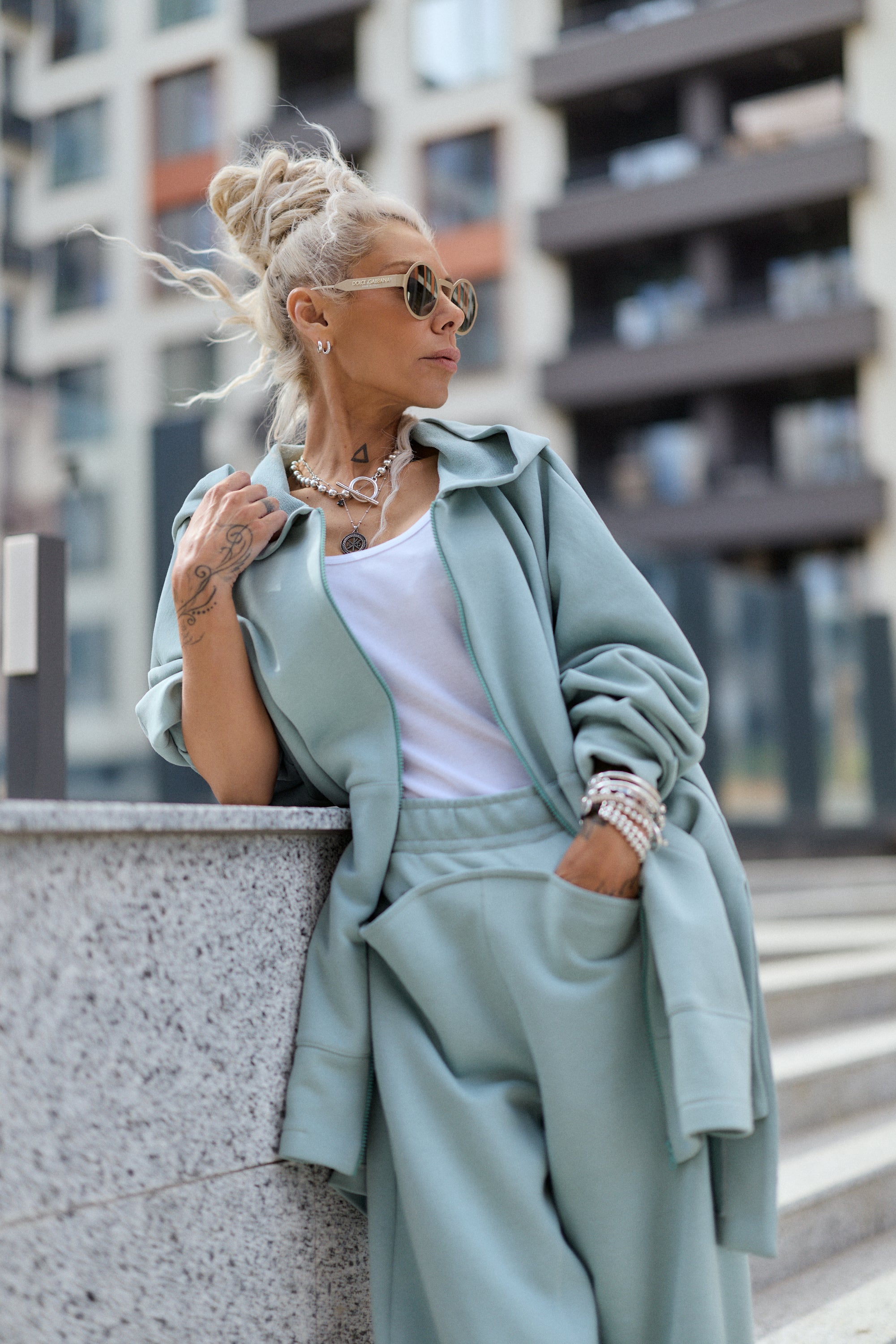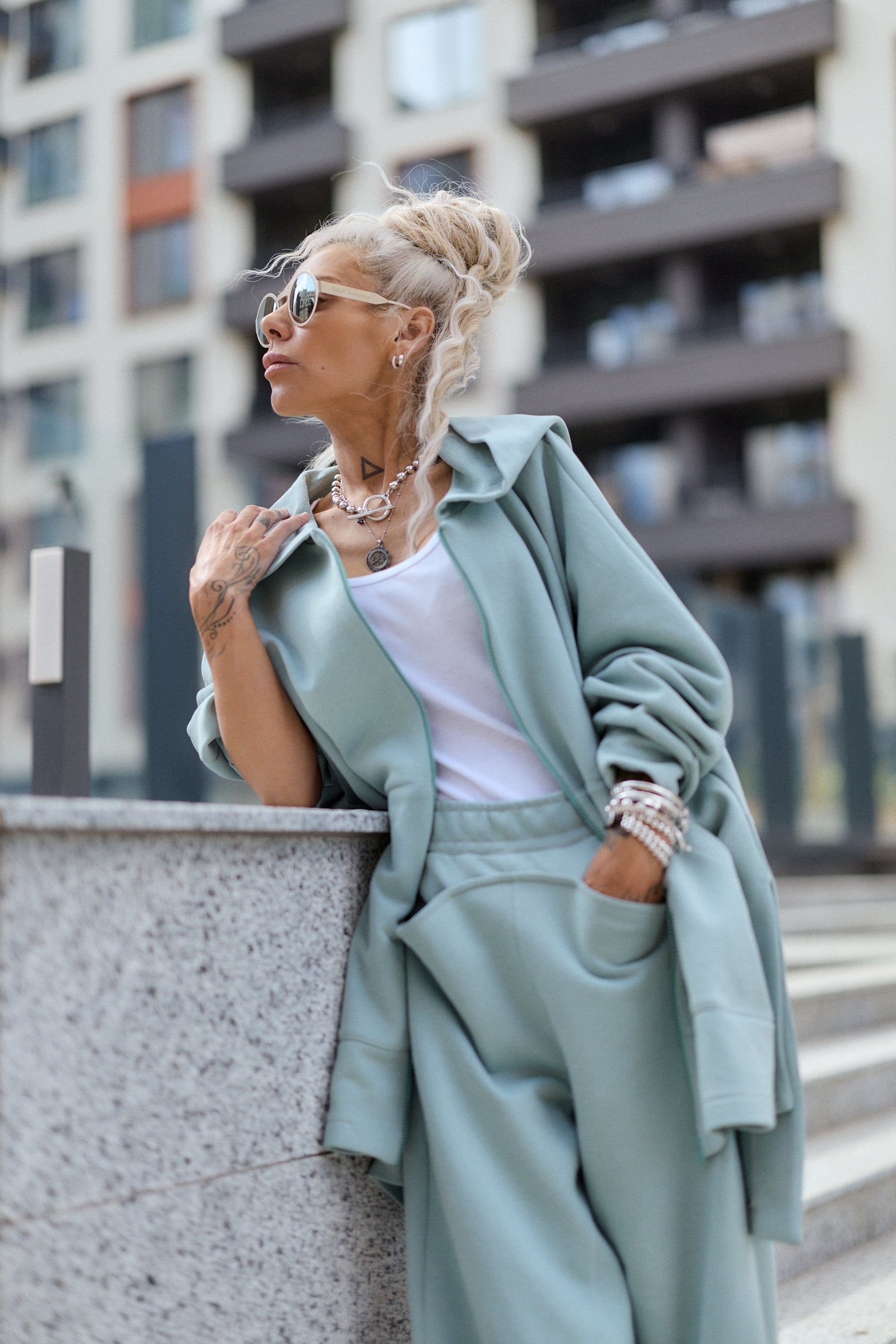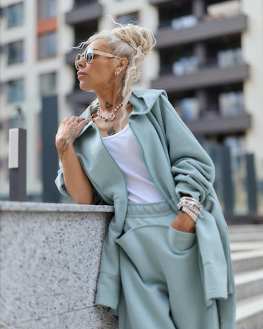 Worn together, the set creates a clean, coordinated look. Each piece also works separately, making it easy to combine with basics already in your wardrobe.