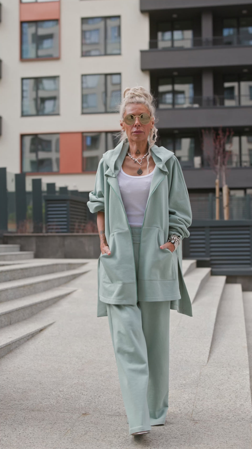 Wear as a full set for a consistent look, or separate the pieces. Pair the hoodie with jeans or the pants with a fitted top for contrast.