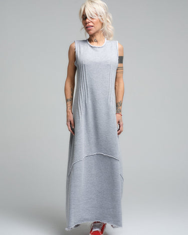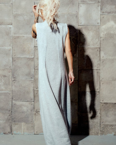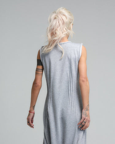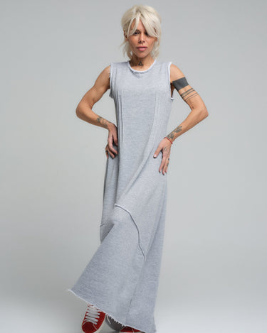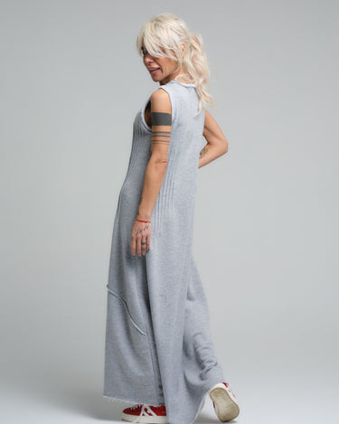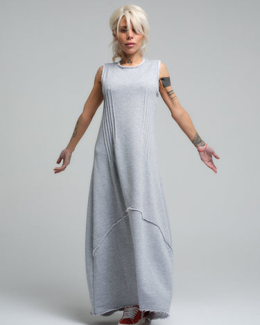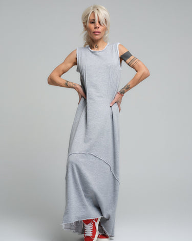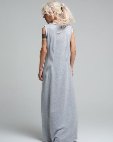 Our grey maxi dress is the epitome of laid-back chic, made from soft viscose that drapes beautifully for a comfortable yet stylish look. Its sleeveless design and subtle scoop neckline offer a casual elegance that's perfect for sunny days or layered under a jacket when the evening cools down.