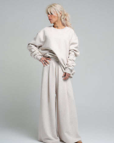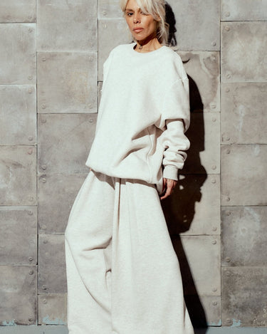 Oversized sweatshirt with drop shoulders for a modern silhouette. High-rise with a wide-leg cut to complement the relaxed top. Ideal for those work-from-home days or casual weekend outings.