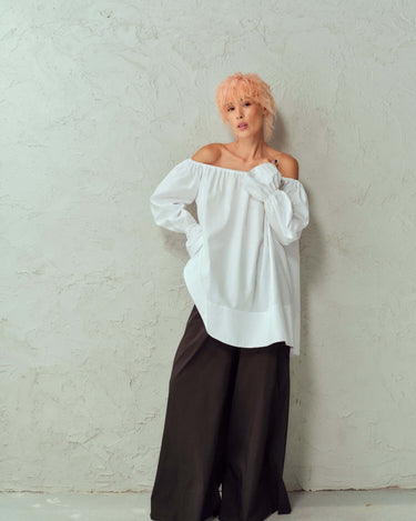 Give them the cold shoulder in our classy white top. The easygoing relaxed shape goes well with similar relaxed styles for an effortlessly chic look.