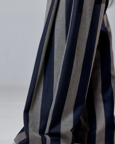 Wide-Leg Striped Pants in Navy and Taupe